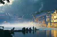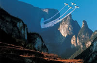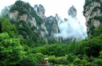 天門山國(guó)家森林公園四面絕壁,雄偉壯麗。保存著完整的原始次生林,植物資源豐富,有世界罕見的高山珙桐群落。天門山文化底蘊(yùn)深厚,留有大量贊詠天門山的詩(shī)詞,更有眾多神聞傳說,被譽(yù)為“張家界之魂”。山頂天門山寺自唐朝建成以來香火鼎盛,寺外有七級(jí)浮屠,掩映于青枝綠葉中,古雅幽清。善男信女入寺拜佛,撞鐘響徹天際,擊鼓震動(dòng)山岳,香煙裊裊如云。明萬歷年間南岳僧在此傳經(jīng)授戒,從此聞名遐邇,朝山拜佛者達(dá)周邊四郡十余縣,信士遍及湘西北,天門山因此成為 “湘西第一神山”。天門山終年云霧繚繞,云海景象變化無窮。山間溶丘、石芽廣布,奇石秀木及珍禽異獸繁多,更有飛瀑流泉噴涌而出。天門山兼峰、石、泉、溪、云、林于一體,集雄、奇、秀、險(xiǎn)、幽于一身,被譽(yù)為空中原始花園。天門洞、天縫渡仙、五指山、將軍石等是有名的峰林景觀,還有神秘的千佛洞等待你的探奇;山間的韓家溝則是富蘊(yùn)滿族風(fēng)情的村落——這里久居的幾十戶滿族農(nóng)家至今仍完好保留著其在語言、飲食、衣著、居住以及婚慶殯葬等方面的滿族風(fēng)俗,是難得的民俗文化旅游地。