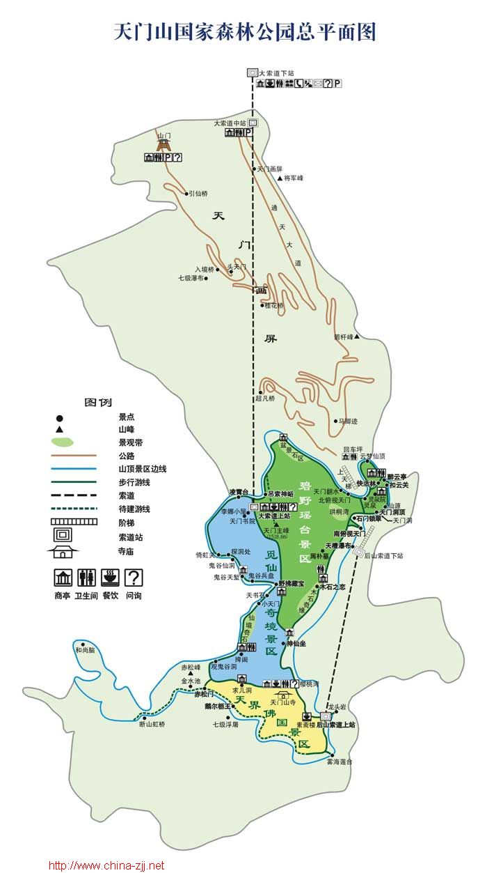 天門山旅游圖_天門山游覽平面圖