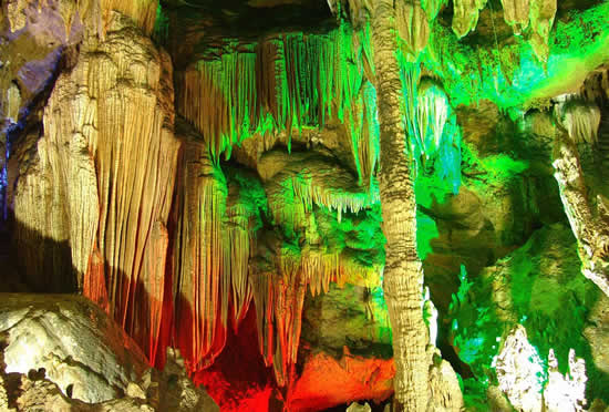 奇梁洞位于縣城北四公里處,屬典型的碳酸鹽巖洞,該洞以奇、秀、闊、幽四大特色著稱。洞長6000余米,共分五大景區(qū):即古戰(zhàn)場、畫廊、天堂、龍宮和陰陽河。洞中有山,奇梁洞圖片山中有洞,洞洞相連。它集奇巖巧石,流泉飛瀑于一洞,由千姿百態(tài)的石筍、石柱、石鐘乳構成了一幅幅無比瑰麗的畫卷。一條小溪穿洞而過,水流平緩,燈光打在巖壁上,皺襞倒影在水中,如夢如幻。巖洞用五光十色的霓虹燈打在石筍、石幔及石花上,營造出一個流光溢彩的世界。在洞內有一大廳,據(jù)傳是苗民糾集的地方,廳里立著一塊帶一個小孔的石頭,對著小孔“嗚嗚”地吹,整個大廳會回蕩著低沉的號角聲,當年的苗民就是用這種方式傳令的。