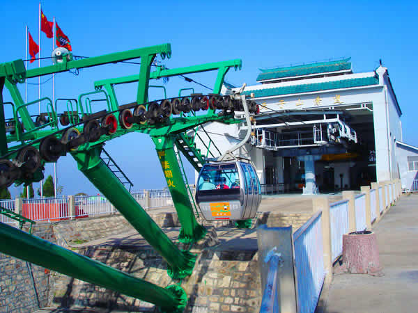 湖南武陵源索道有限公司成立于1995年12月7日,武陵源區(qū)人民政府和香港安達國際度假樂園(張家界)有限公司簽約,是由香港安達國際有限公司投資的外商獨資企業(yè)。1996年6月動工興建天子山索道,1997年5月正式對外營運。天子山索道是單線循環(huán)式脫掛抱索器客運索道,全部設(shè)備自奧地利Doppelmayr公司進口。設(shè)計水平線1960m,斜線長2084m,兩端站高差692m。配單線自動循環(huán)車廂41個,每車廂載6人,運速5m/s,每小時單向運量900人。索道動力電,采用雙電源;配備有應急備用柴油機,用于停電或發(fā)生設(shè)備事故時緊急疏散游客。