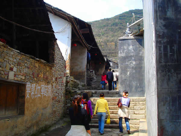 流水悠悠,人事蒼桑。到了近代,由于陸上交通的迅速崛起,水上交通漸漸衰落,小鎮(zhèn)慢慢地被人遺忘在峽谷之中了。失去了往日繁華的小鎮(zhèn),并沒有失去多少古色古香的本來面目,使我們今天能通過這殘缺的街道、建筑、店鋪,去感受她逝去的風(fēng)采。古老的風(fēng)火墻、底矮的吊腳樓,向游人展示著土家人的聰明才智,一條條青石板、一聲聲咚咚喹,在訴說著古寨子過去的輝煌。