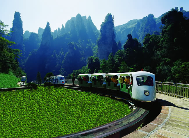 十里畫廊觀光小火車是張家界十里畫廊風(fēng)景區(qū)的電瓶交通車,讓游客更好的觀賞張家界十里畫廊的美麗風(fēng)景,也是十里畫廊的一大特色。