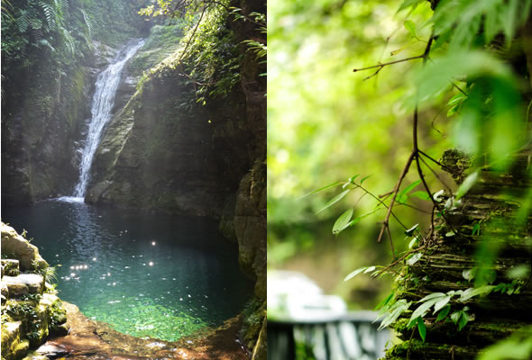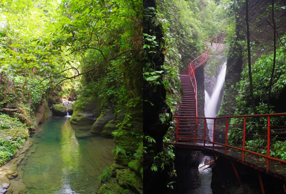 十八潭總名。稍作休憩,我們開始奔赴東線的景點(diǎn)。東線主要是以十八潭為主,下游有4潭:合潭、梳妝潭、魚潭、黑潭;中游有9潭:換衣潭、美人潭、石蛙潭、姊妹潭(3個(gè))、情侶潭(2個(gè))、二龍搶珠,上游有5潭:鬼谷神功(2個(gè))、幽潭、落銀潭(彩虹潭)、路邊潭。十八個(gè)潭深淺不一,淺則1米以上,深則4米左右,形狀各異,有的月牙形,有的豬腰狀,形狀不規(guī)則,石壁上水沖成潭,真是鬼谷神功,此處水質(zhì)細(xì)膩,加之綠林映襯,水色碧綠見底,猶如十八顆翡翠石鑲嵌在山林之間,涓涓溪流晶瑩剔透,飛流直下的瀑布,氣勢(shì)磅礴,蔚為壯觀, 下游的4潭,合潭、梳妝潭、魚潭、黑潭。合潭是仙女峽谷與十八潭的交匯處;梳妝潭的水清如明鏡,又因?yàn)樘秲蓚?cè)石頭的封閉,使這面鏡子靜止不動(dòng),很方便梳妝,照鏡子。在梳妝潭周圍,有一種植物屬于紅豆杉系列,它的形狀好似梳子,可以用來(lái)梳頭。魚潭可不能望文生義。魚潭,是在冬天的時(shí)候,所有的魚都聚集在這里過(guò)冬,除此之外,這個(gè)潭水淺見底,冬天魚苗聚集,是捕魚的好季節(jié)。黑潭,水深不見底,所以叫黑潭,F(xiàn)在已經(jīng)看不見梳妝潭、魚潭、黑潭了,你猜為什么?建水庫(kù),建水上樂(lè)園,淹沒(méi)了。 斷魂石的傳說(shuō)。三國(guó)時(shí)期,高氏和蕭氏一對(duì)夫妻春節(jié)忙活,遇上了天門垮眼,受余震襲擊,打死了丈夫蕭氏。高氏思念丈夫,淚哭不斷,結(jié)果摔死潭中。人們經(jīng)常還能聽到哭聲傳來(lái),不敢單獨(dú)行走,需成群結(jié)隊(duì)。后人為了鎮(zhèn)邪,雕刻一條蜈蚣驅(qū)趕哭魂,多年后,蜈蚣成精,天上打雷,巖石發(fā)光,遭雷所劈,成了斷魂石。 和尚姥,也就是丹灶峰,天門十六峰之一。相傳此峰為仙人化身,赤松子曾在此煉丹,許多詩(shī)人在此留下了美妙的詩(shī)篇,明代葉守禮《丹灶峰》: 懸崖峭壁隔塵寰,上有仙人學(xué)煉丹。 煉得丹成鶴已去,獨(dú)留丹灶在峰巒。 意思是說(shuō),在這險(xiǎn)峻秀麗的山峰上,赤松子潛心煉丹,不受塵世干擾,身心沉醉于秀美的山間,沉溺于丹藥的煉制之中。作者很是羨慕那種與世隔絕的超脫,那種執(zhí)著于自我理想的瀟灑,你羨慕不羨慕? 竹林叢生。我們要學(xué)習(xí)竹子的精神,中空、謙卑;我們要學(xué)習(xí)竹子的精神,抱團(tuán)生長(zhǎng);我們要學(xué)習(xí)竹子的精神,破土而出,節(jié)節(jié)高。 向家塔。打造農(nóng)耕養(yǎng)生游的地方。種田、種菜、種花,農(nóng)家餐館。 爛泥巴根。爛泥巴根和馬桑樹是同科,是這里獨(dú)特的一種樹。馬桑樹亦稱“千年紅”、“馬鞍子”,屬落葉灌木,馬桑樹多枝叢生,一簇一簇的,枝葉像傘蓋,因此“馬桑樹兒搭燈臺(tái)”。春風(fēng)一吹,滿山的馬桑樹、爛泥巴根就吐翠滴綠,顯示出強(qiáng)勁的生命力。打油詩(shī)一首: 青青枝條四方走, 肥肥大葉落上頭, 身在路邊無(wú)人問(wèn), 冬去春來(lái)樂(lè)悠悠。 秋天死亡,春天長(zhǎng)勢(shì)更加茂盛,它的新生是通過(guò)死亡實(shí)現(xiàn)的。山川如此,植物也是如此,這里的一草一木無(wú)不透露著道家那種齊生死、等貴賤的精神。 這叫“常道”亭,“道可道,非常道”,據(jù)說(shuō)是白狐與劉海相遇的地方。吊橋。 十八潭各具特色。 中游有9潭。第五潭叫換衣潭。巖石聳立,霧氣氤氳,巖壁上布滿水汽,猶如雨下。又因過(guò)道狹窄,行人需彎腰通過(guò),未免雨水打濕衣裳,在此就要脫下身上衣物,通過(guò)后在第六潭再穿上。因此第六潭又叫美人潭,很幽深神秘的。第七潭叫石蛙潭,水淺,又比較平穩(wěn)、安全,春天產(chǎn)籽。余音回響,猶如蛙鳴,給人“聽取蛙聲一片”的錯(cuò)覺。 對(duì)面巖壁叫“臘肉鋪”,那條自上而下的溪流叫“酒長(zhǎng)流”,客人來(lái)了,咱土家人熱情,臘肉下炕,苞谷燒,喝兩口! 第八潭第九潭叫情侶潭,比較隱蔽,他倆靜悄悄地談著情話,我們快走,不要打攪他們。 第十潭、十一潭、十二潭叫姊妹潭。下面那個(gè),水淺淺的,溫溫的,是幺妹潭,中間那個(gè)是二哥潭,上面那個(gè)是大哥潭。 潭的旁邊有珍稀植物馬蘭花,馬蘭花又名蝴蝶花、蝴蝶蘭,為多年生宿根草本花卉,根莖短粗,肥壯。花大新奇,花色絢麗,鮮艷奪目。花有藍(lán)、白、黃、雪青等色;ㄆ5-6個(gè)月,每次花可開花7-10天,頗耐觀賞。馬蘭花在我國(guó)栽培已有2000多年的歷史,目前歐、亞、非3洲均有分布,品種極多,難以計(jì)數(shù)。此花按植株高度不同可分3種類型:矮株型僅18-25厘米,中株型高25-70厘米,高株型可高達(dá)120厘米。馬蘭花喜陽(yáng)光,適栽于背風(fēng)向砂質(zhì)土壤中。 馬蘭開花的童謠。他們?nèi)⒚眯r(shí)候情感深厚,常常一起跳皮筋。大家會(huì)跳嗎?會(huì)唱嗎? 小汽車,滴滴滴,馬蘭開花二十一, 二五六二五七,二八二九三十一, 三五六三五七,三八三九四十一, 四五六四五七,四八四九五十一, 五五六五五七,五八五九六十一 ! 還有紅豆杉,像梳頭的篦子,叫“篦子三尖杉”。還有蘭心草,中草藥,空中飄來(lái)蘭花的香氣,山谷中峭壁的蘭花,如芳芳人品善良高雅。蘭花如人品有宜人的香氣,蘭花有撩人的幽香,任何花卉的香氣都不能與蘭花比。這幽香時(shí)隱時(shí)現(xiàn),時(shí)濃時(shí)淡,時(shí)遠(yuǎn)時(shí)近。飄蕩在老道灣山谷中,給人清新和愉快的感受。 蘇轍有詩(shī):“谷深不見蘭生處,追
