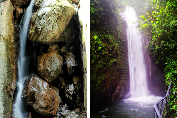 西線原名叫雪花溪,又叫雪花洞,水從懸崖上掉下來濺起水花,泉水與巖石相碰,落成大霧,形成雪花狀,故名雪花溪。因地勢(shì)險(xiǎn)峻,歷代人都沒有把雪花溪走通過,從下往上看深不見底,古人以為是一個(gè)洞,故又叫雪花洞,其實(shí)是一個(gè)峽谷,有七潭七瀑,現(xiàn)在叫“仙女峽谷”。峽谷長800米,最窄處僅1米左右,上下落差近200米,因水的長期回旋沖刷, 巖層的堅(jiān)硬度各異,形成了底寬頂窄,時(shí)北,時(shí)西,時(shí)東,陰暗無光,形似溶洞, 泉水飛流直下,形成梯級(jí)瀑布,擊打在巖壁上濺起的水花猶如雪花飛舞,潭中一片雪白,古人稱之為雪花洞,峽谷中有七個(gè)各異的潭池在沖擊的水花中若隱若現(xiàn),故改稱為七仙女人間沐浴瑤池,從開天辟地起無人行通過,現(xiàn)在已修好的占道,于峽谷水花之中,幻入仙境之感。