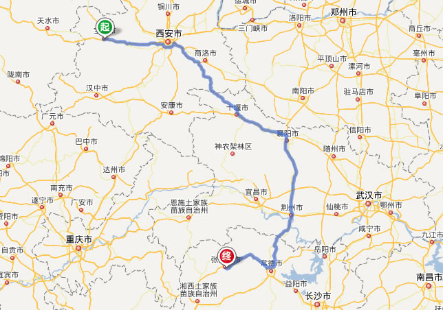 左右,沿途經過寶雞——西安——十堰——襄陽——荊門——荊州——澧縣——石門縣——慈利縣——張家界市。