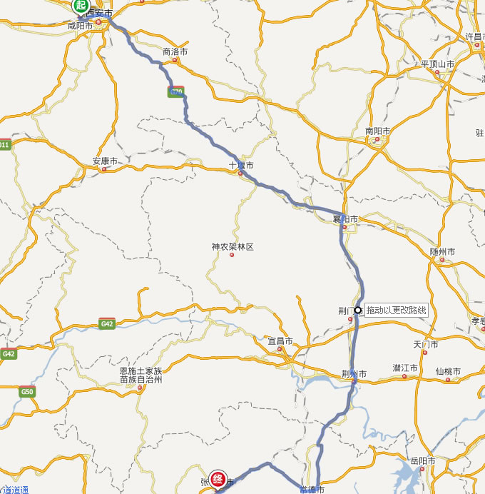 咸陽去張家界自駕車自助游線路圖全程高速):