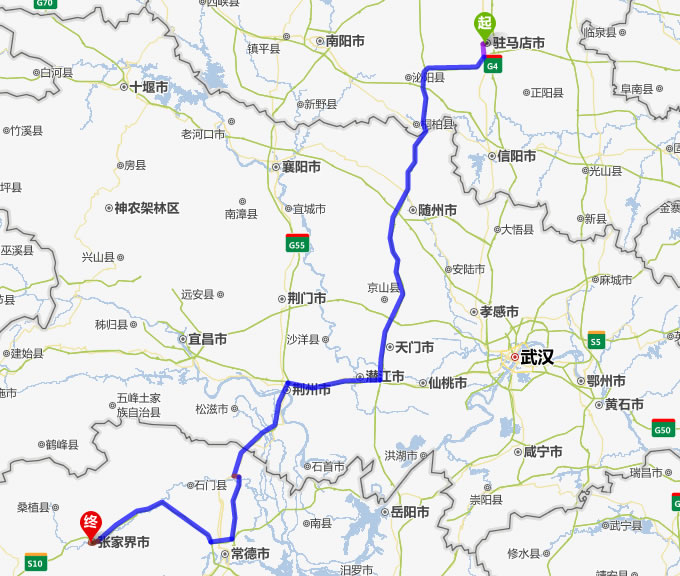駐馬店去張家界自駕車自助游線路圖全程高速):