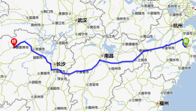 天臺(tái)去張家界自駕車自助游線路圖全程高速):