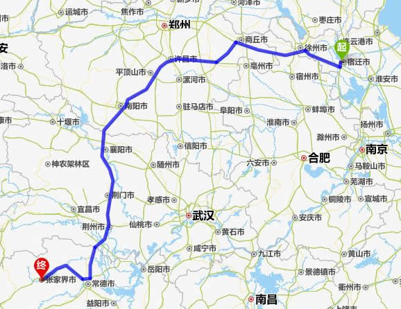 宿遷去張家界自駕車自助游線路圖全程高速):