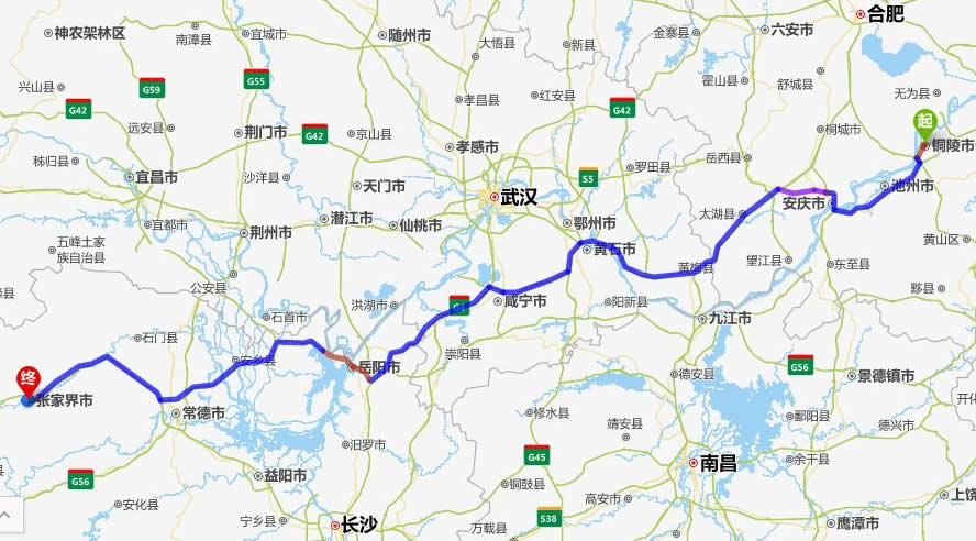 銅陵去張家界自駕車自助游線路圖全程高速):