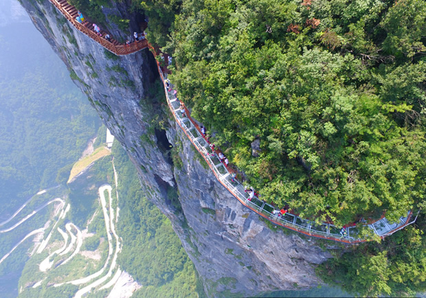 天門(mén)山景區(qū)第三條玻璃棧道——盤(pán)龍崖玻璃棧道