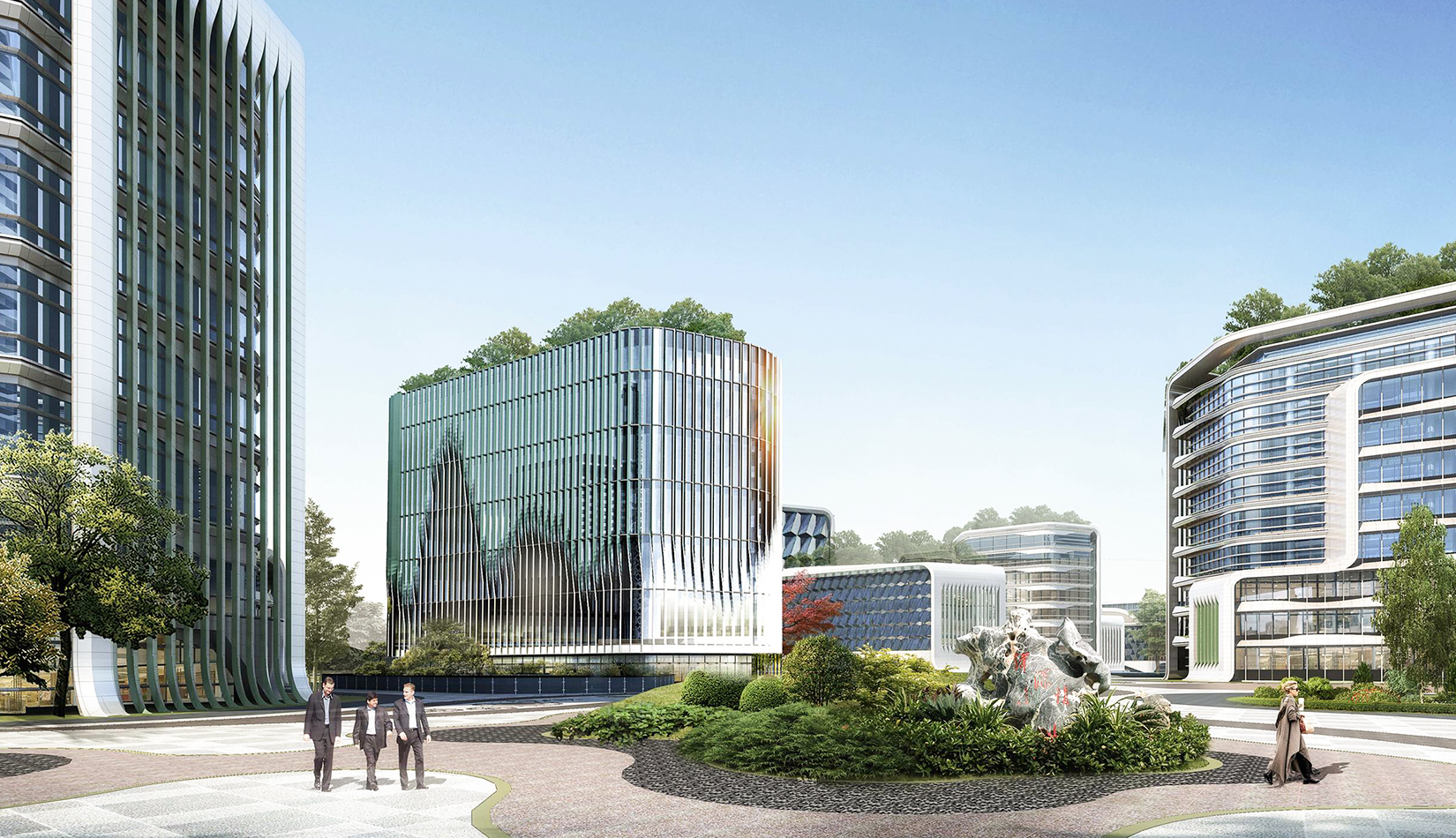 規(guī)劃設(shè)計(jì)以“曲水流觴”為理念,空間布局取“曲水流觴”場景精髓,以曲徑通幽的景觀系統(tǒng)作為主軸,以組團(tuán)布局的院士樓為節(jié)點(diǎn),完成整個(gè)園區(qū)的規(guī)劃設(shè)計(jì)。布局貫穿南北的云游步道,曲徑通幽,步移景異,人在步道上行走,猶如流動的羽觴杯,尋訪院士樓、穿行重重竹林、覓河濱綠地等景致,體會古代曲水流觴之儒風(fēng)雅俗。