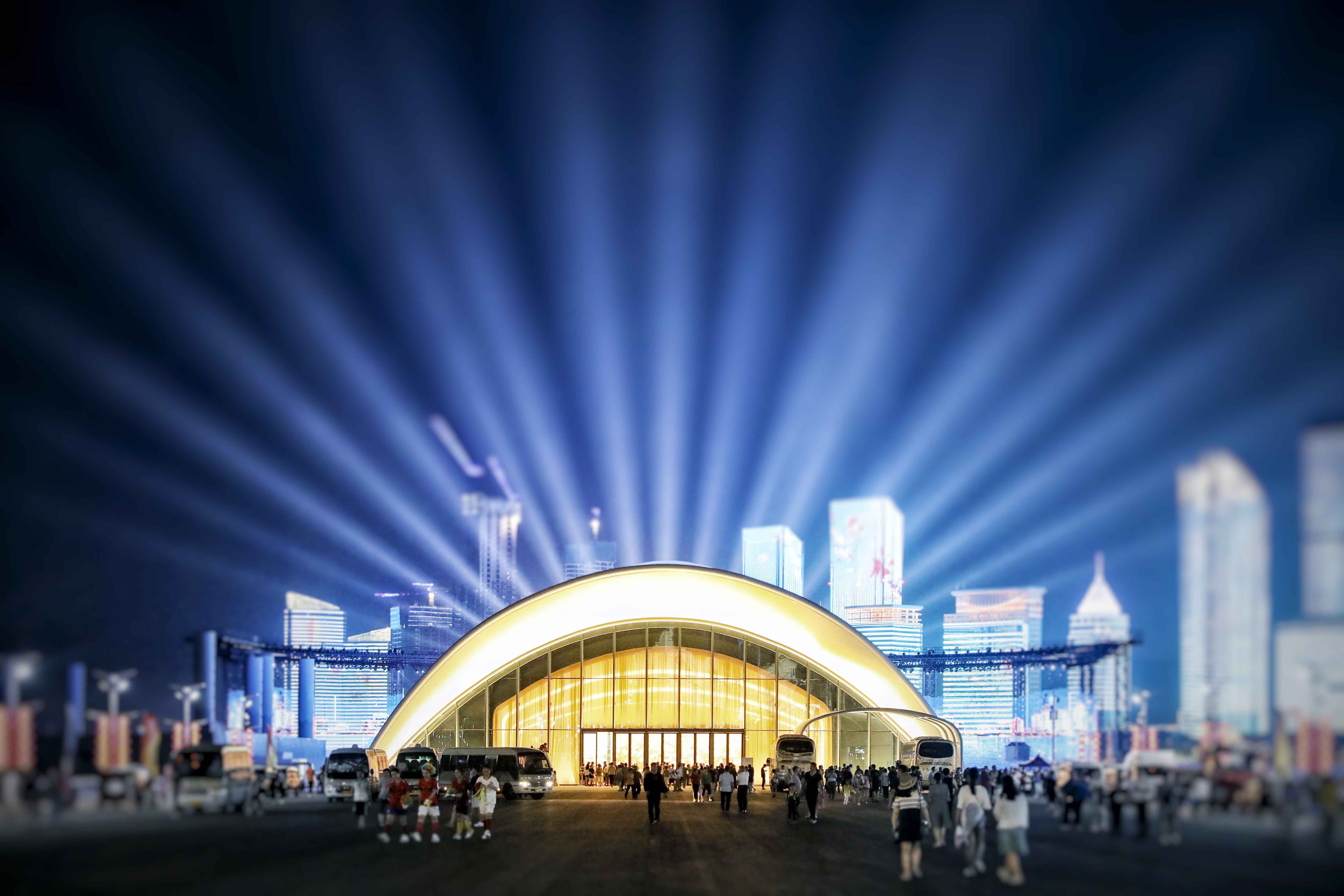 本項目在保留原有建筑主體結(jié)構(gòu)的基礎上,結(jié)合本次會議活動的相關(guān)需求,對其規(guī)模、形象、功能進行改造提升。主題材料采用輕盈的鋼結(jié)構(gòu)與膜結(jié)構(gòu),造型宛如海浪中靈動的風帆,彰顯青島這座海洋名稱、帆船之都的獨特魅力。