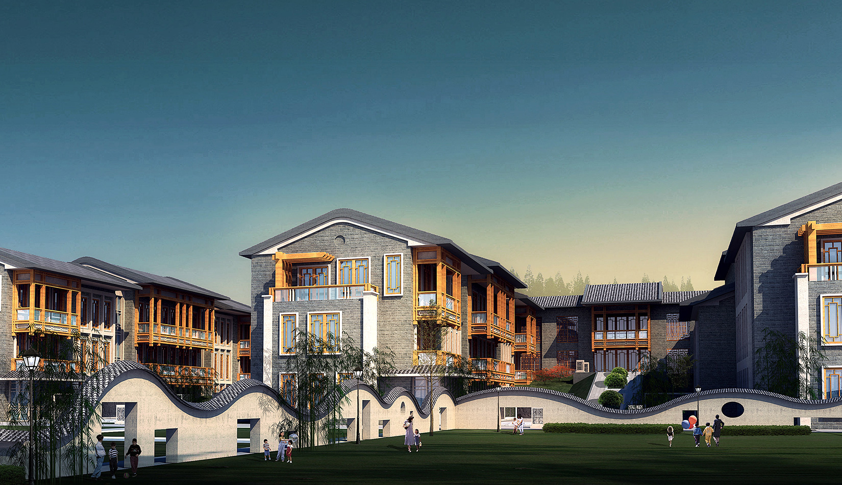 靈珠山幼兒園通過建筑與景觀在中式風(fēng)格上的統(tǒng)一,為孩子們創(chuàng)造出傳統(tǒng)私塾的氛圍,為下一代的成長營造具有濃厚文化氣息的場所。