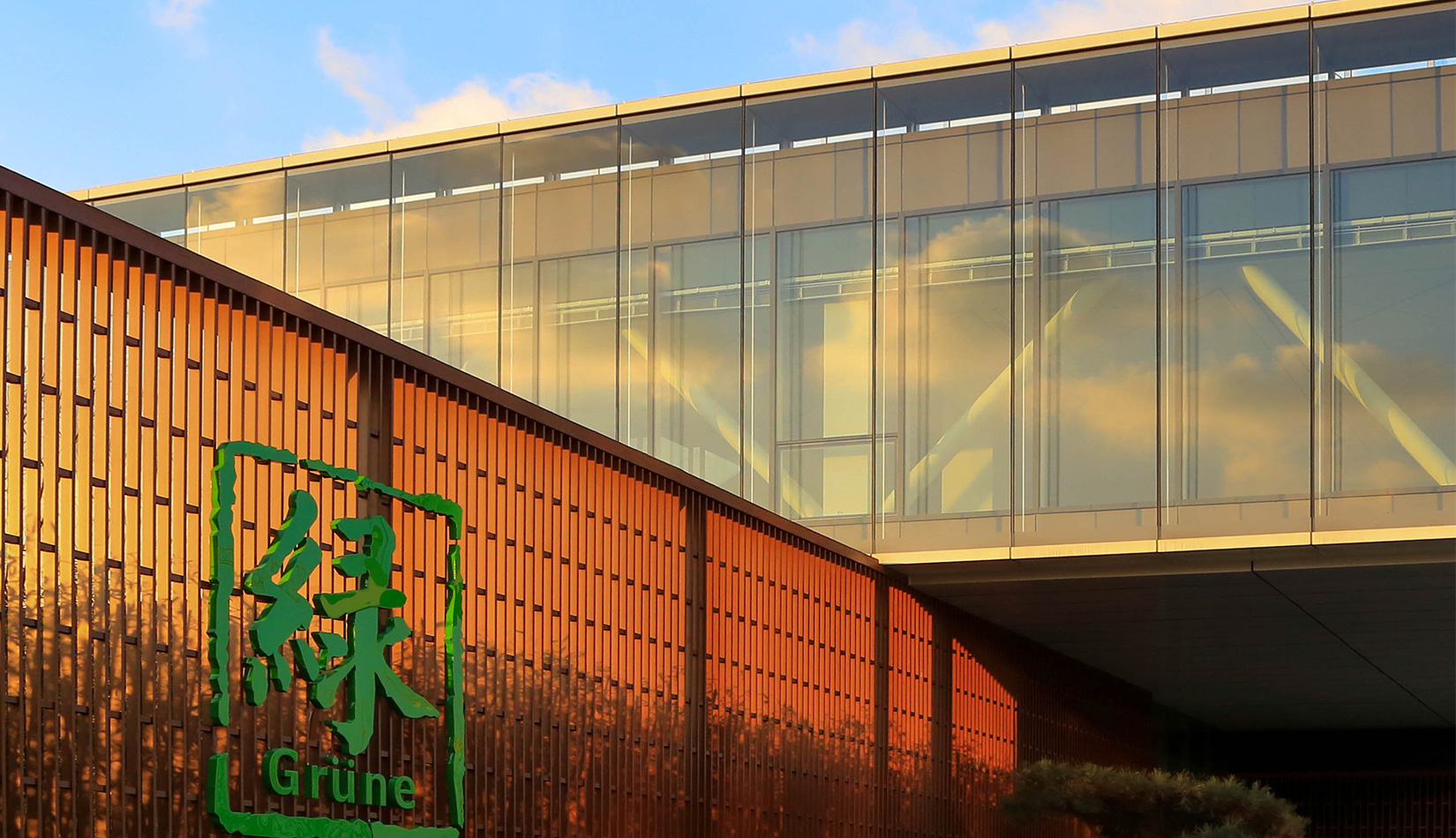 方案簡潔明快,追求德國品質(zhì)。簡潔的形體、精致構件、木質(zhì)表皮、屋頂綠化、獨立庭院共同打造方案特色。主入口處玻璃體量懸挑形成入口空間,景墻與建筑融為一體。建筑大面積純凈的玻璃與木材表皮的組合給人自然、舒適之感。