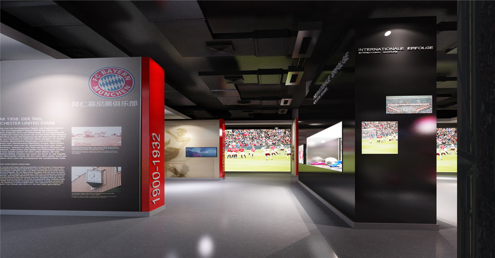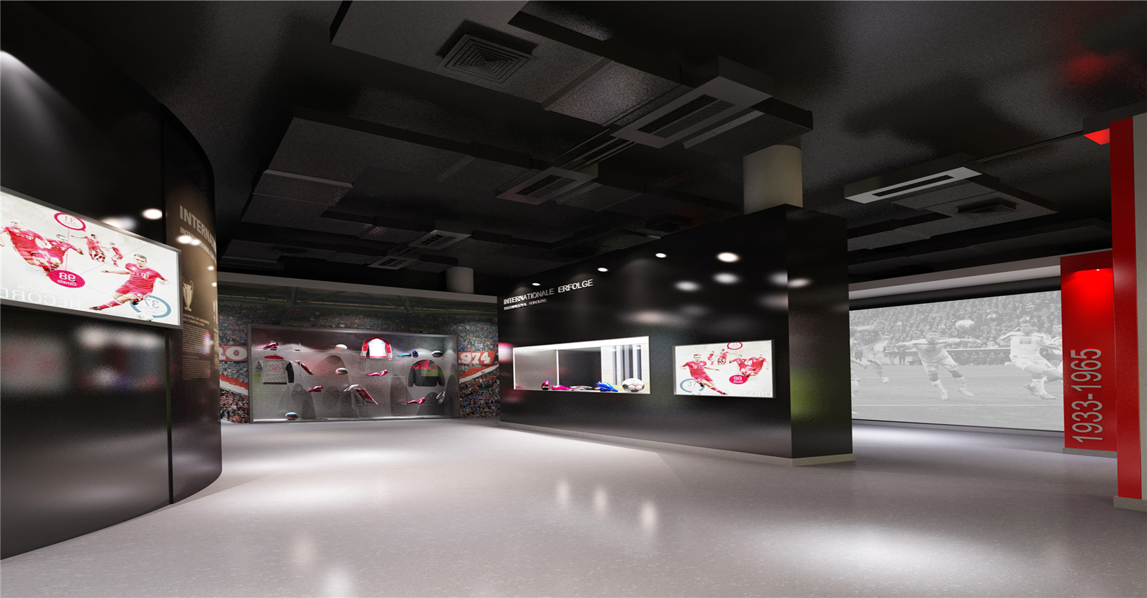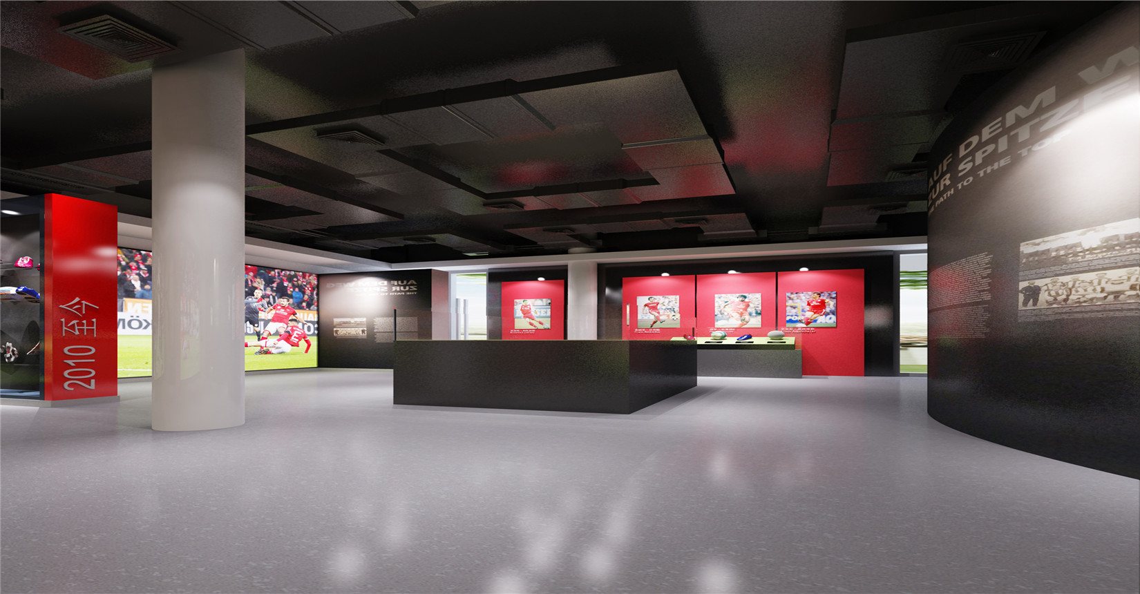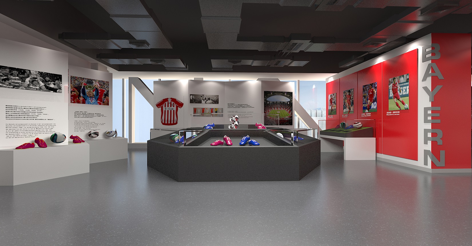 本次設計方案運用后現(xiàn)代主義風格的設計手法來展現(xiàn)中德兩國足球運動的歷史及發(fā)展。迎合當前環(huán)境下中德兩國在足球產業(yè)方面進行的交流與合作,是中德體育促進足球培訓、商務推廣的窗口平臺,向人們展示足球精神的人文內涵與魅力。