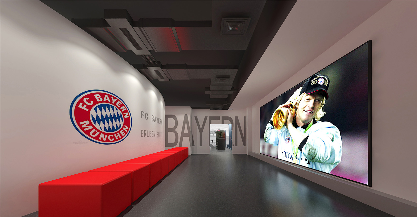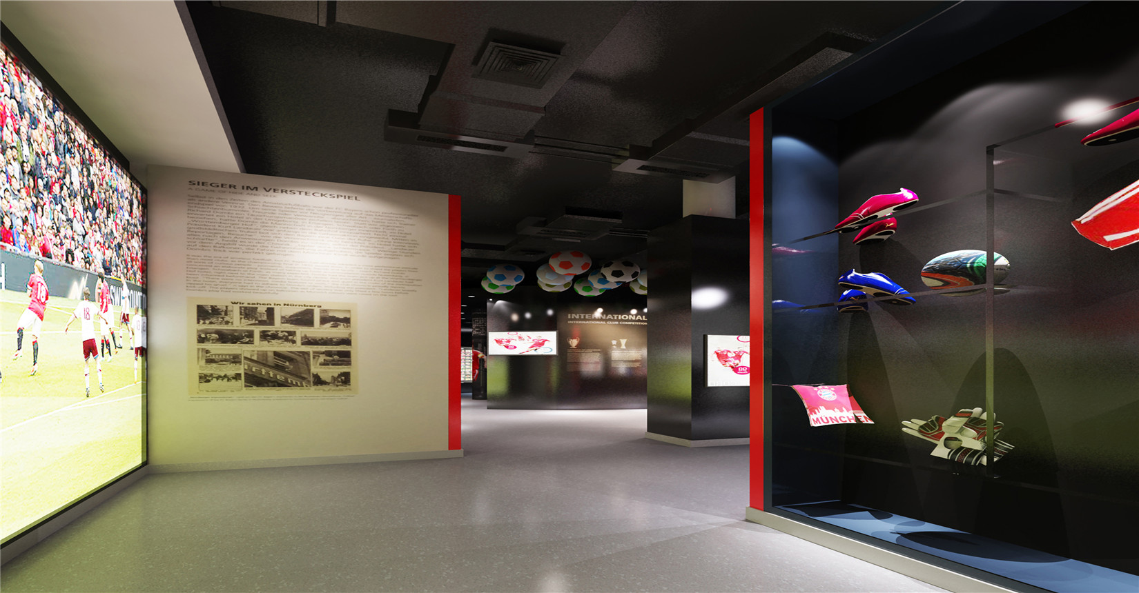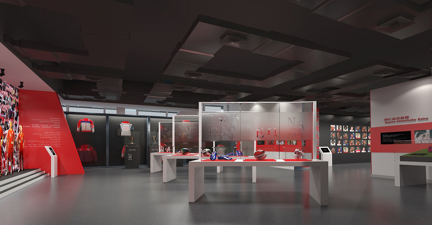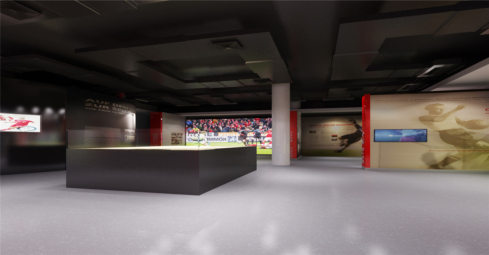 本次設計方案運用后現(xiàn)代主義風格的設計手法來展現(xiàn)中德兩國足球運動的歷史及發(fā)展。迎合當前環(huán)境下中德兩國在足球產業(yè)方面進行的交流與合作,是中德體育促進足球培訓、商務推廣的窗口平臺,向人們展示足球精神的人文內涵與魅力。