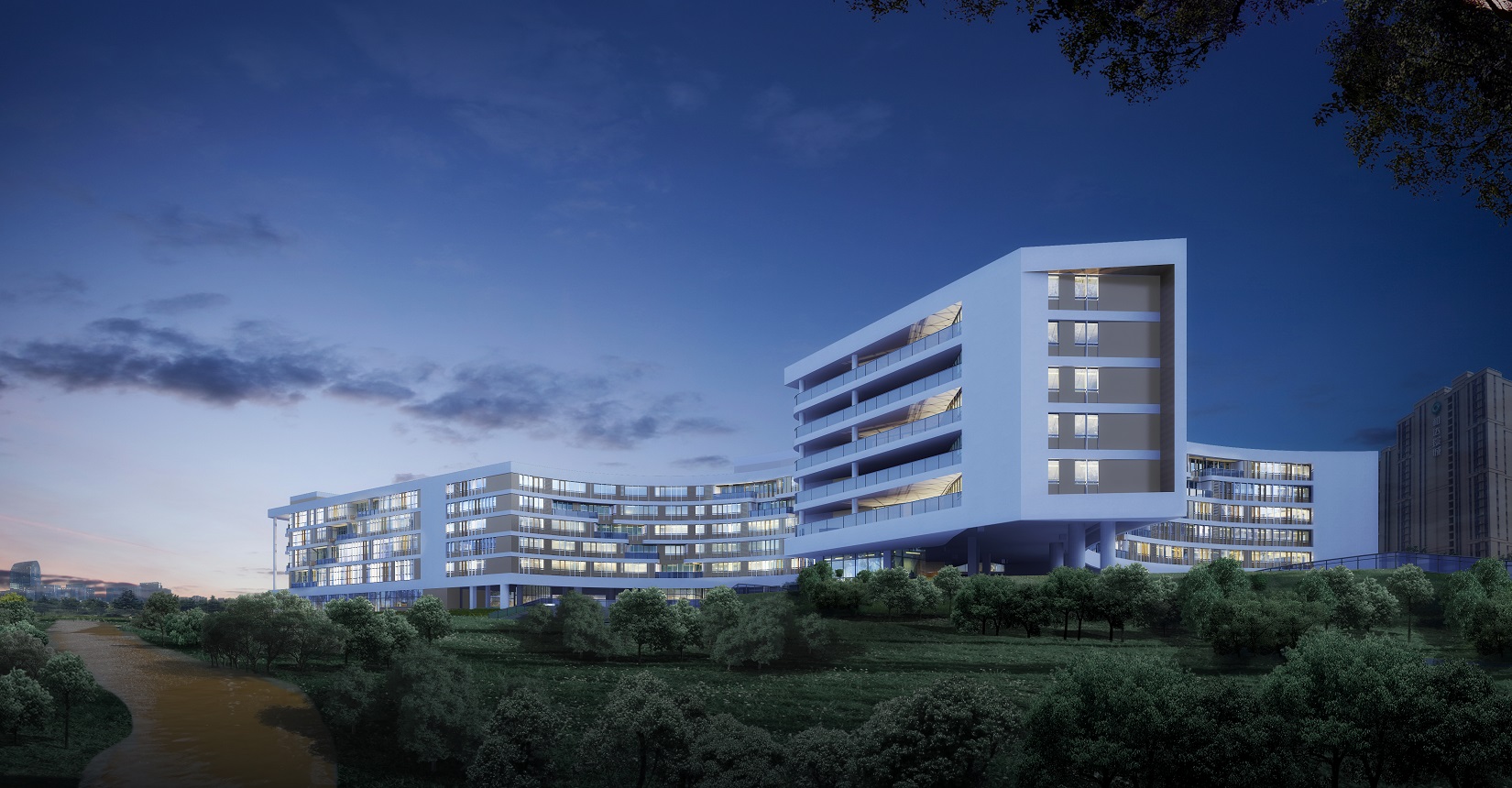 考慮到用地形狀、使用功能和日照等條件因素的影響,總平面布局以“生長(zhǎng)”為主題,寓意生命向上生長(zhǎng)的力量,生生不息,無(wú)限伸展。枝杈無(wú)限分支向上生長(zhǎng),象征著無(wú)限的力量與生機(jī)。而中醫(yī)的健康講究氣血通暢,循環(huán)往復(fù),從而衍生出“五行”相輔相成的設(shè)計(jì)理念。根據(jù)五行方位確定五行主題。將金水湖與建筑相融合,金水湖為“水”,輔“金”“木”“火”“土”四個(gè)主題廣場(chǎng)。