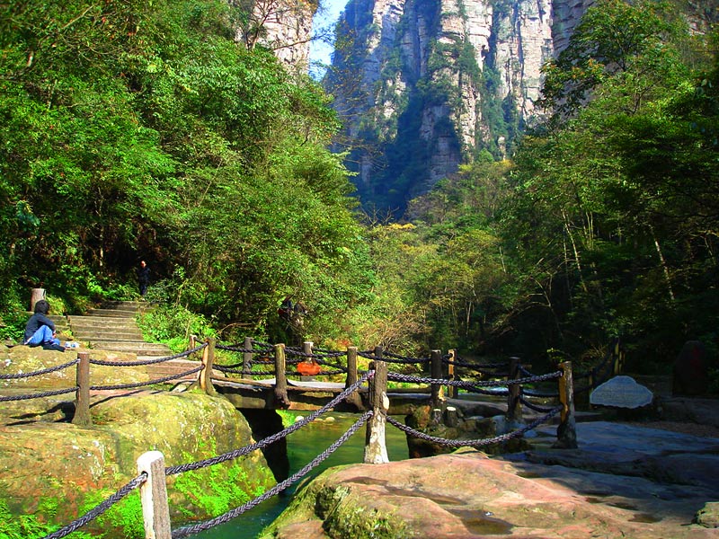 上 午:張家界市區(qū)出發(fā),乘車直接從武陵源門票站進入【張家界國家森林公園】游玩(門票245元+5元景區(qū)保險,游覽兩天);徒步游覽“世界上最美麗的峽谷”---金鞭溪景區(qū)(約2.5小時)(包含觀音送子、豬八戒背媳婦、神鷹護鞭、劈山救母、西游記外景拍攝地、千里相會等景點。)提示:走完金鞭溪后,沿龍鳳庵方向上楊家界。還可以從八里坡徒步約1.5小時上楊家界或者乘坐楊家界索道(需要乘坐者自行購買)上山,在指定時間地點集合。
